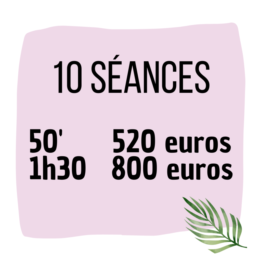 Oui ! Je propose deux forfaits de 5 ou 10 séances, à utiliser dans le temps selon vos besoins ou via un planning que nous définirons ensemble. Ces forfaits permettent de bénéficier de réductions sur le montant total des séances. Le règlement s’effectue en 1, 2 ou 3 fois selon vos besoins.
